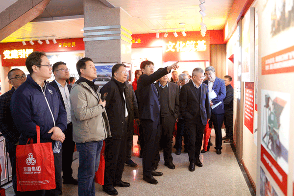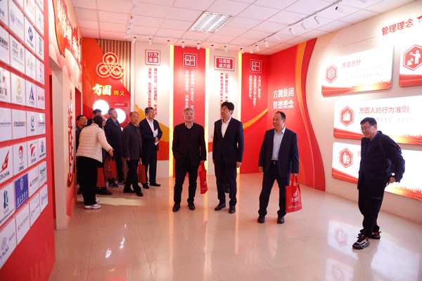 與會(huì)代表首先來(lái)到科技文化中心,通過(guò)沙盤(pán)介紹,了解方圓集團(tuán)概況概貌、產(chǎn)業(yè)布局。步入發(fā)展歷程展廳,通過(guò)“艱苦創(chuàng)業(yè)”“奮起騰躍”“創(chuàng)新開(kāi)拓”“鑄就輝煌”“穩(wěn)健前行”五個(gè)篇章,回顧方圓集團(tuán)從小到大、由弱到強(qiáng)的閃光歷程。