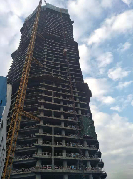 工程概況:工程總高度為:206m(不含地下工程),建筑樓層每一層都有一個角度變化,造型美觀而復雜。主樓施工電梯配置要求:變頻調速升降機,提升速度0-56m/min,額定載重量不低于2T,吊籠內尺寸不低于3.8*1.5*2.5,最大提升高度不低于206m.